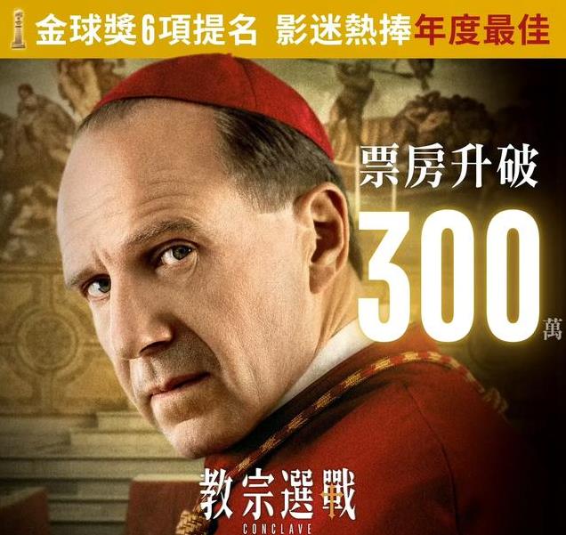 犯罪悬疑片《宗教选战》(内地翻译名《秘密会议》)由爱德华·贝尔格执导,主演为拉尔夫·费因斯、斯坦利·图齐和约翰·利斯戈。该片排映44场,吸引1069位观众,票房收入10.8万港币,并且已获得2025年美国金球奖最佳剧本提名。